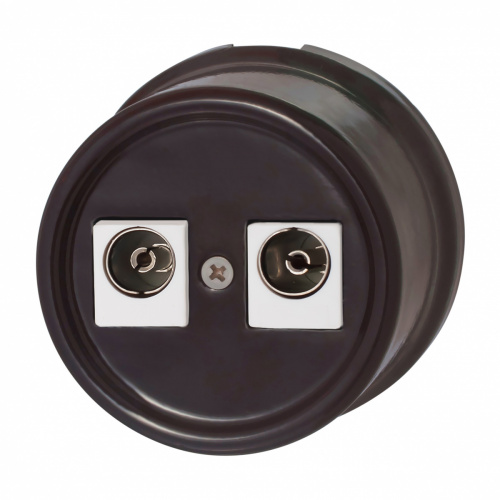 Розетка оконечная Лизетта, телевизионная (TV), двойная, цвет - коричневый