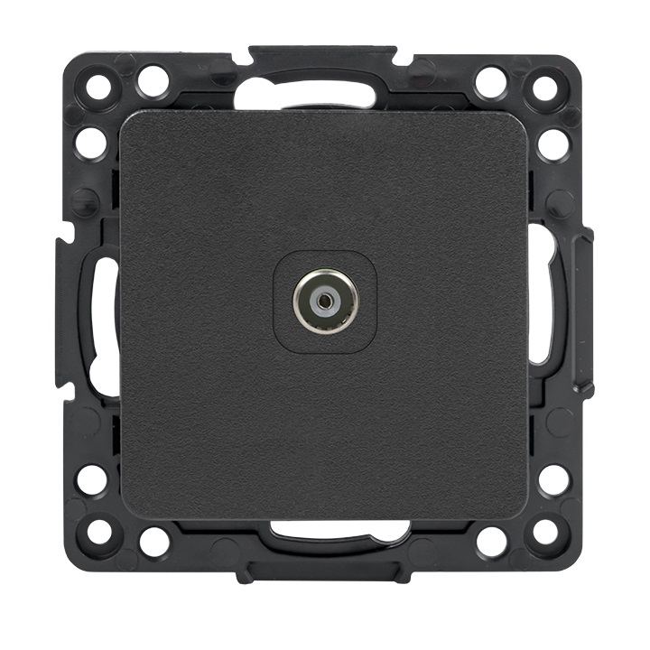 Розетка проходная Стокгольм, телевизионная (TV), одинарная, цвет - черный