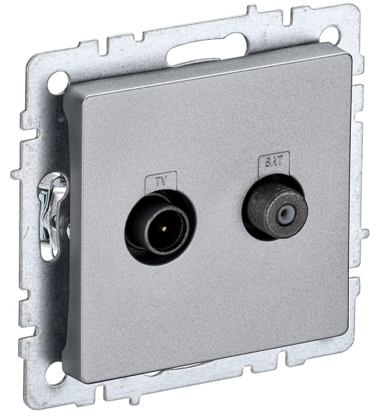 Розетка оконечная TV-SAT BRITE, телевизионная (TV), спутниковая (SAT), двойная, цвет - алюминий