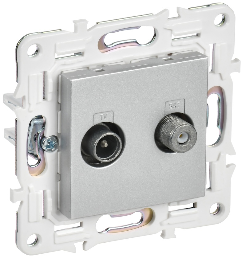 Розетка оконечная TV-SAT Skandy, телевизионная (TV), спутниковая (SAT), двойная, цвет - серебряный