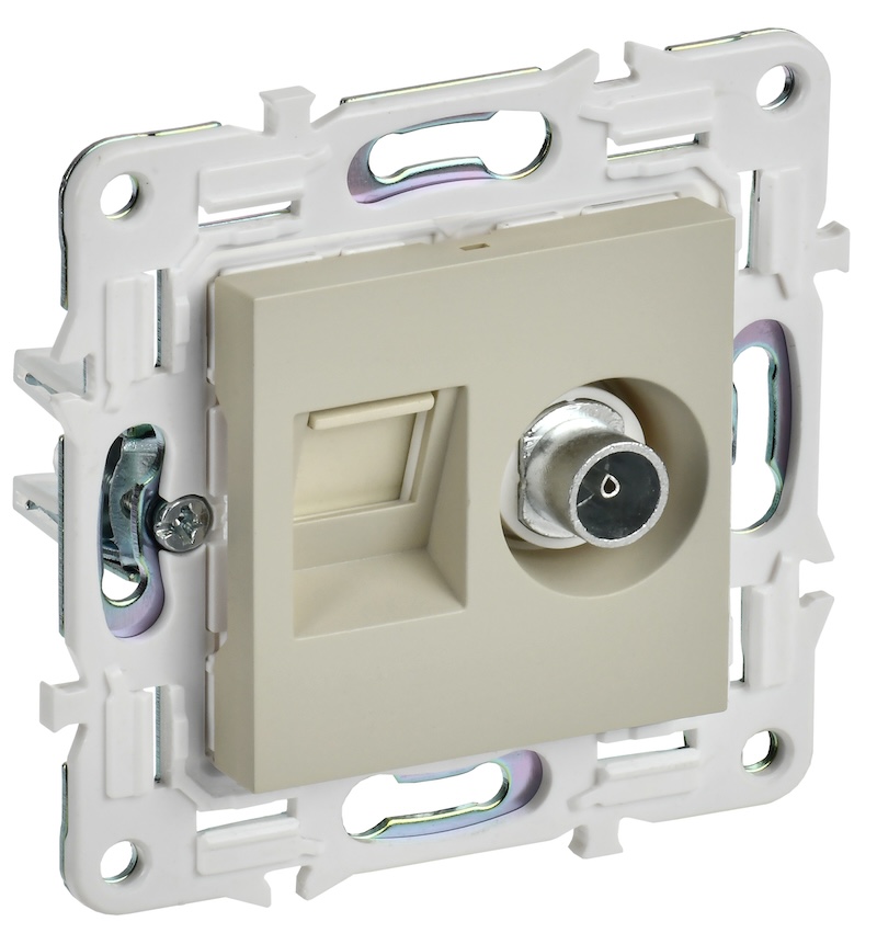 Розетка одиночная TV+RJ45 Skandy, телевизионная (TV), одинарная, цвет - бежевый