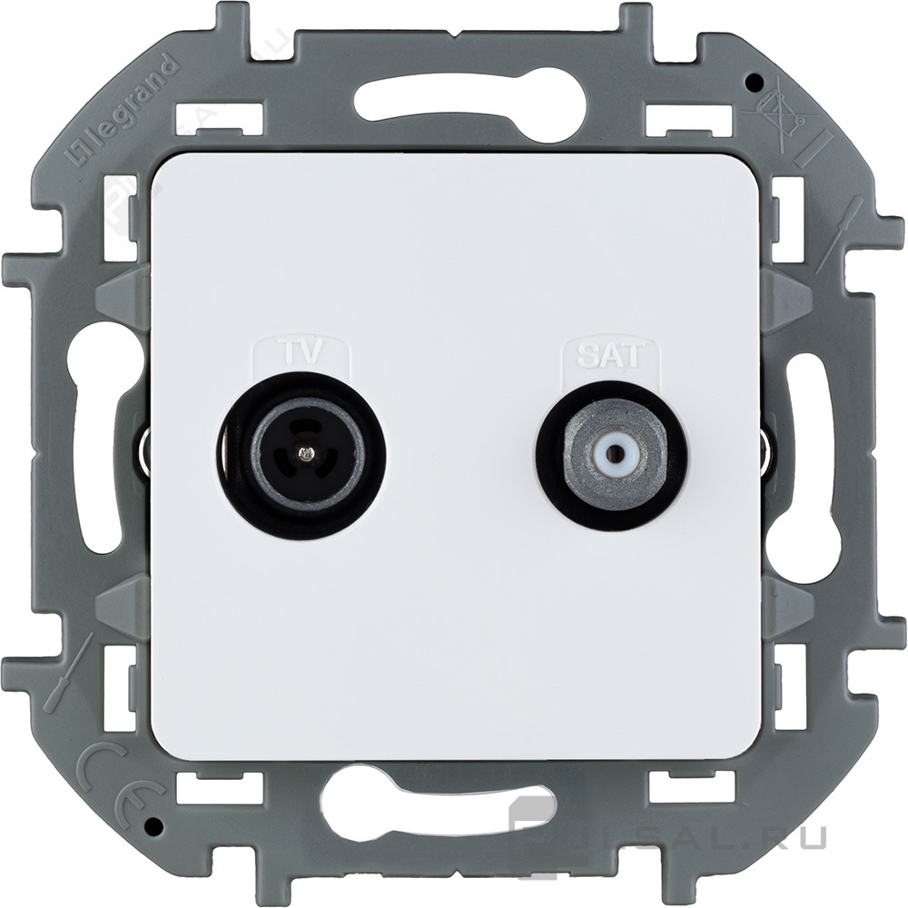 Розетка одиночная Inspiria, телевизионная (TV), спутниковая (SAT), радио (R), двойная, цвет - белый
