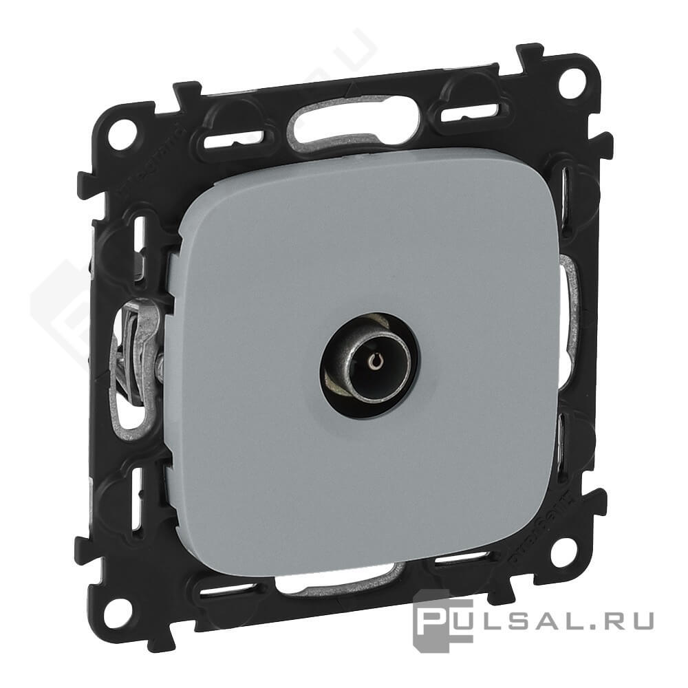 Розетка проходная Valena Allure, телевизионная (TV), одинарная, цвет - алюминий