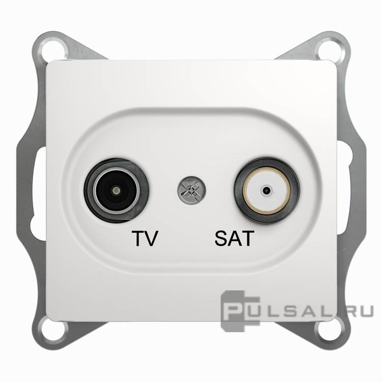 Розетка одиночная TV+RJ45 Glossa, телевизионная (TV), одинарная, цвет - белый
