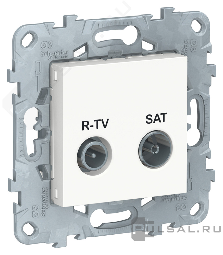 Розетка проходная Unica New Pure, Unica New Studio, телевизионная (TV), спутниковая (SAT), радио (R), двойная, цвет - белый