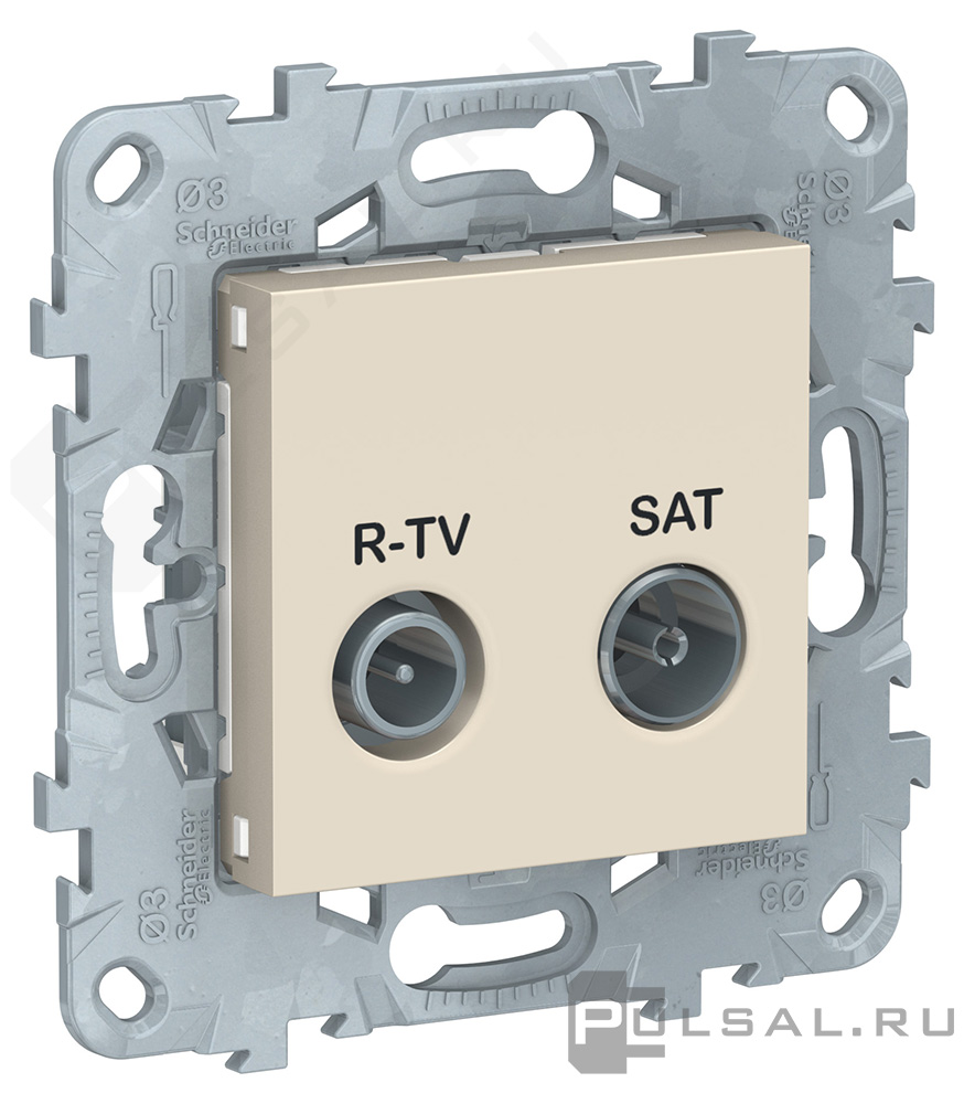 Розетка проходная Unica New Pure, Unica New Studio, телевизионная (TV), спутниковая (SAT), радио (R), двойная, цвет - бежевый