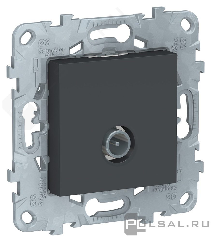 Unica New Pure, Unica New Studio, без шторок, с заземлением, одинарная, безвинтовые клеммы, цвет - антрацит