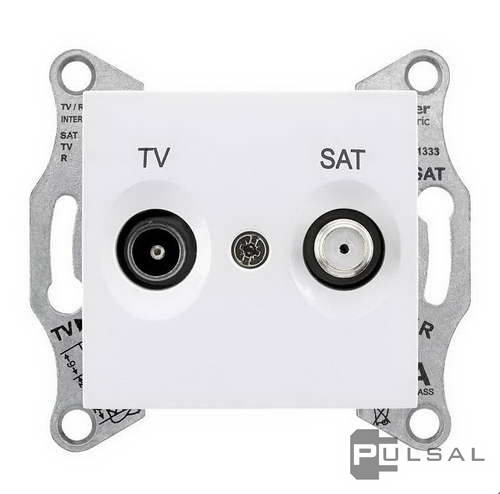 Розетка проходная 8 dB Sedna, телевизионная (TV), спутниковая (SAT), двойная, цвет - белый