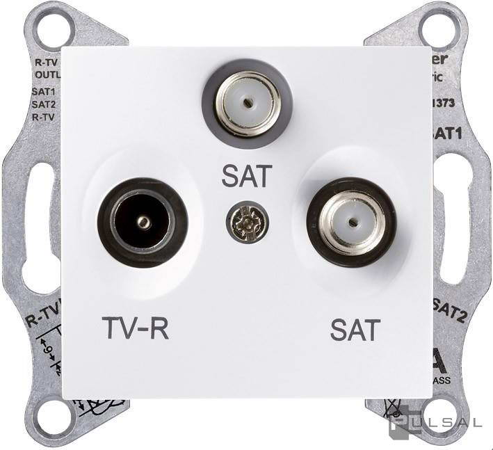 Розетка оконечная 1 dB (двухкабельная) Sedna, телевизионная (TV), спутниковая (SAT), тройная, цвет - белый