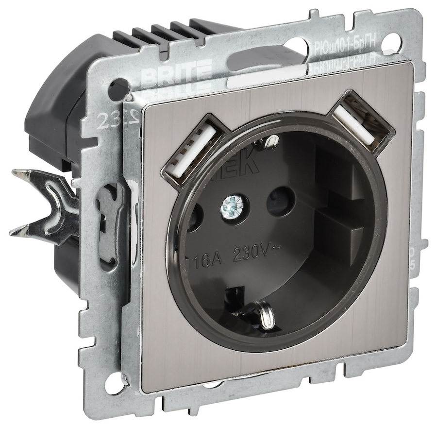 BRITE, USB type-C 5V, USB type-A 5V, двойная, цвет - никель