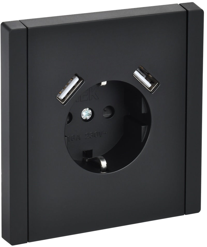 Розетка силовая + 2 USB, А+А, 3,1 А FORTEPIANO, USB type-A 5V, двойная, цвет - черный
