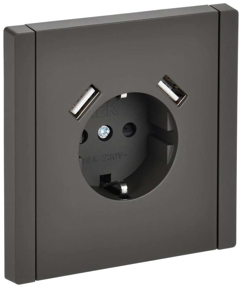 Розетка электрическая + USB А+А, 3,1 А FORTEPIANO, USB type-A 5V, двойная, цвет - серый