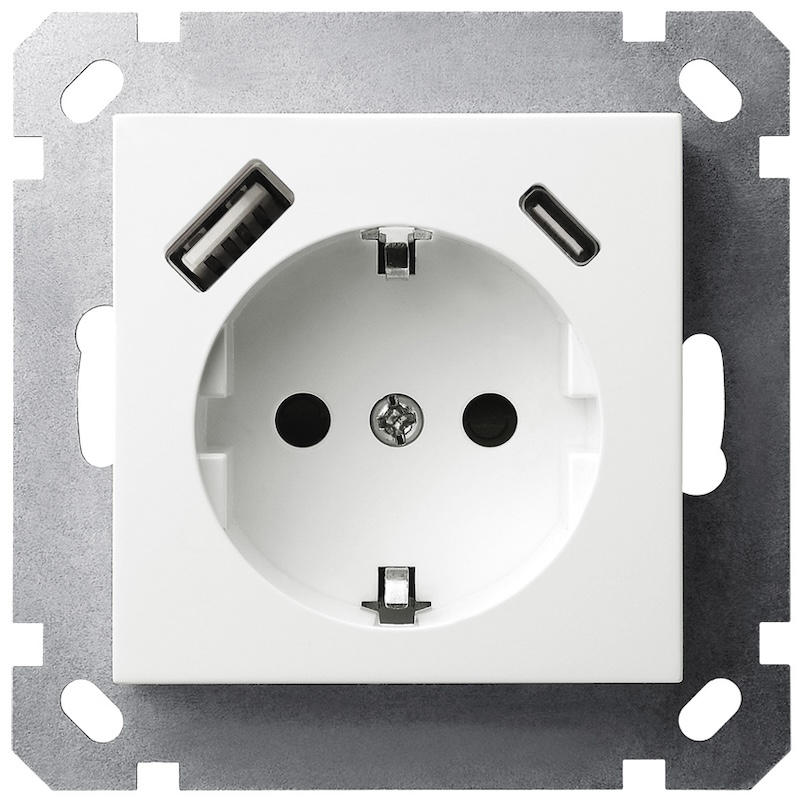 Электрическая розетка с быстроый зарядкой USB type-A+C 25 Вт G series, USB type-C 5V, USB type-A 5V, двойная, цвет - белый глянцевый
