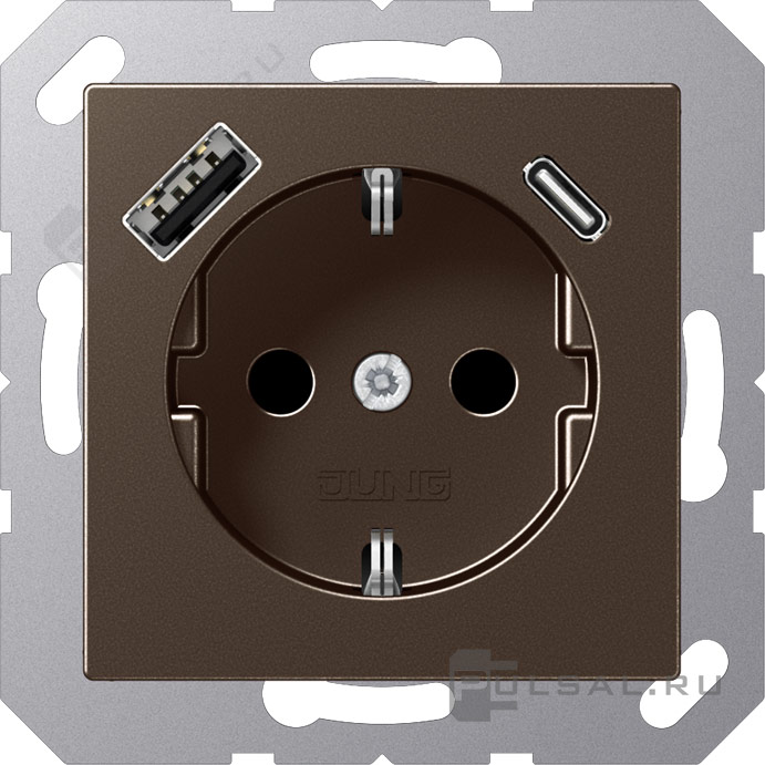 Розетка USB A+C с электрической розеткой A VIVA, A creation, A 550, A flow, USB type-C 5V, USB type-A 5V, Электр. с USB, двойная, цвет - мокко