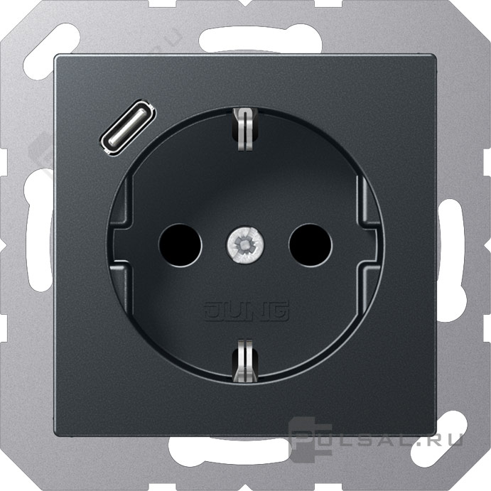 Розетка USB C с электрической розеткой A VIVA, A creation, A 550, A flow, AS 500, USB type-C 5V, Электр. с USB, одинарная, цвет - антрацит матовый