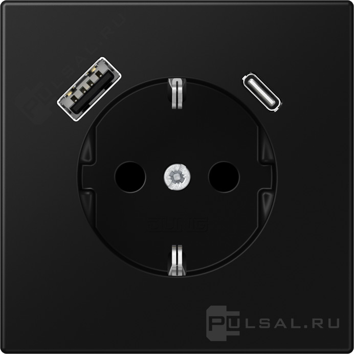Розетка USB A+C с электрической розеткой LS 990, LS plus, LS ZERO, LS-design, FD-design, USB type-C 5V, USB type-A 5V, Электр. с USB, двойная, цвет - черный матовый