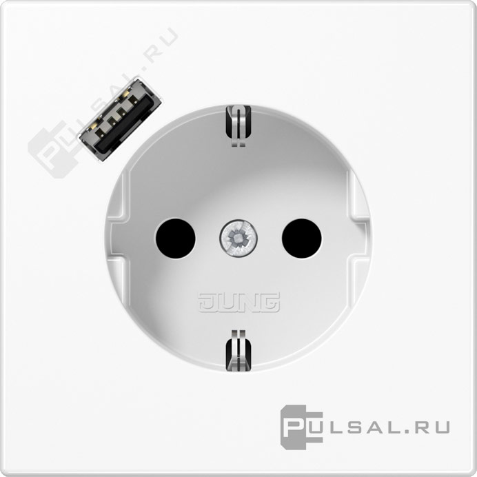 Розетка USB A с электрической розеткой LS 990, LS plus, LS ZERO, LS-design, FD-design, USB type-A 5V, Электр. с USB, одинарная, цвет - белый