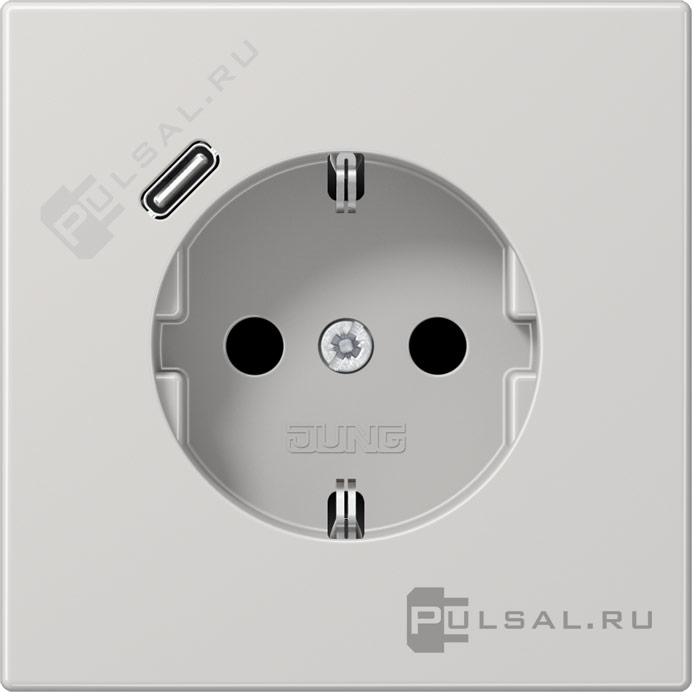Розетка USB C с электрической розеткой LS 990, LS-design, FD-design, USB type-C 5V, Электр. с USB, одинарная, цвет - светло-серый