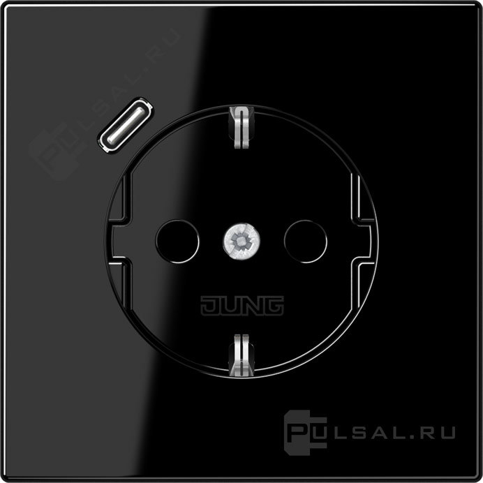 Розетка USB C с электрической розеткой LS 990, LS plus, LS-design, FD-design, USB type-C 5V, Электр. с USB, одинарная, цвет - черный