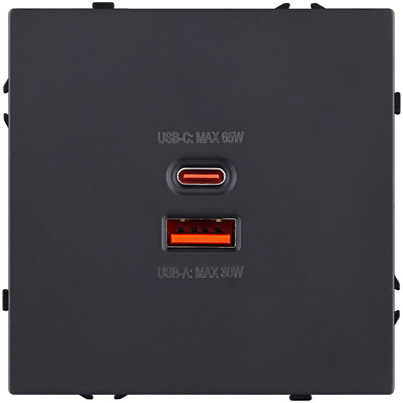 Eclipse, USB type-C 5V, USB type-A 5V, двойная, цвет - Чёрный матовый
