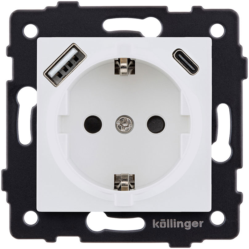 Розетка USB type-C + type-A, 3.0А Aspekt, Eleganz, Reflex, USB type-C 5V, USB type-A 5V, двойная
