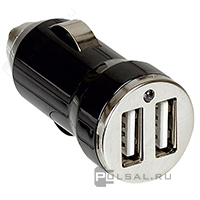 Зарядка USB в прикуриватель автомобиля, 12 В, 2,1A Helium (Элиум), USB type-A 5V, двойная, цвет - черный