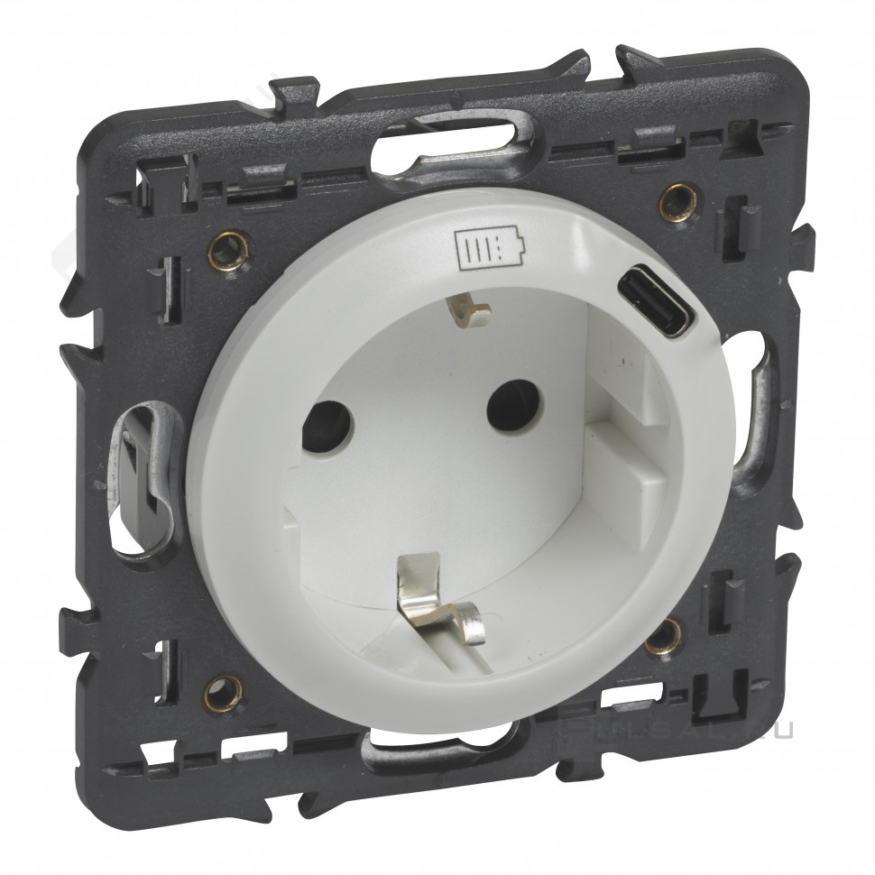 Розетка USB type-C, 3.0А с электрической розеткой Celiane, USB type-C 5V, Электр. с USB, одинарная, цвет - белый