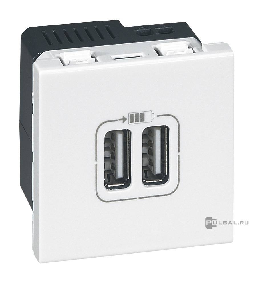 Розетка USB type-A, 2,4А, 12Вт Mosaic, DLP, DLP floor, DLP IP 44, DLP IP 40, USB type-A 5V, двойная, цвет - белый