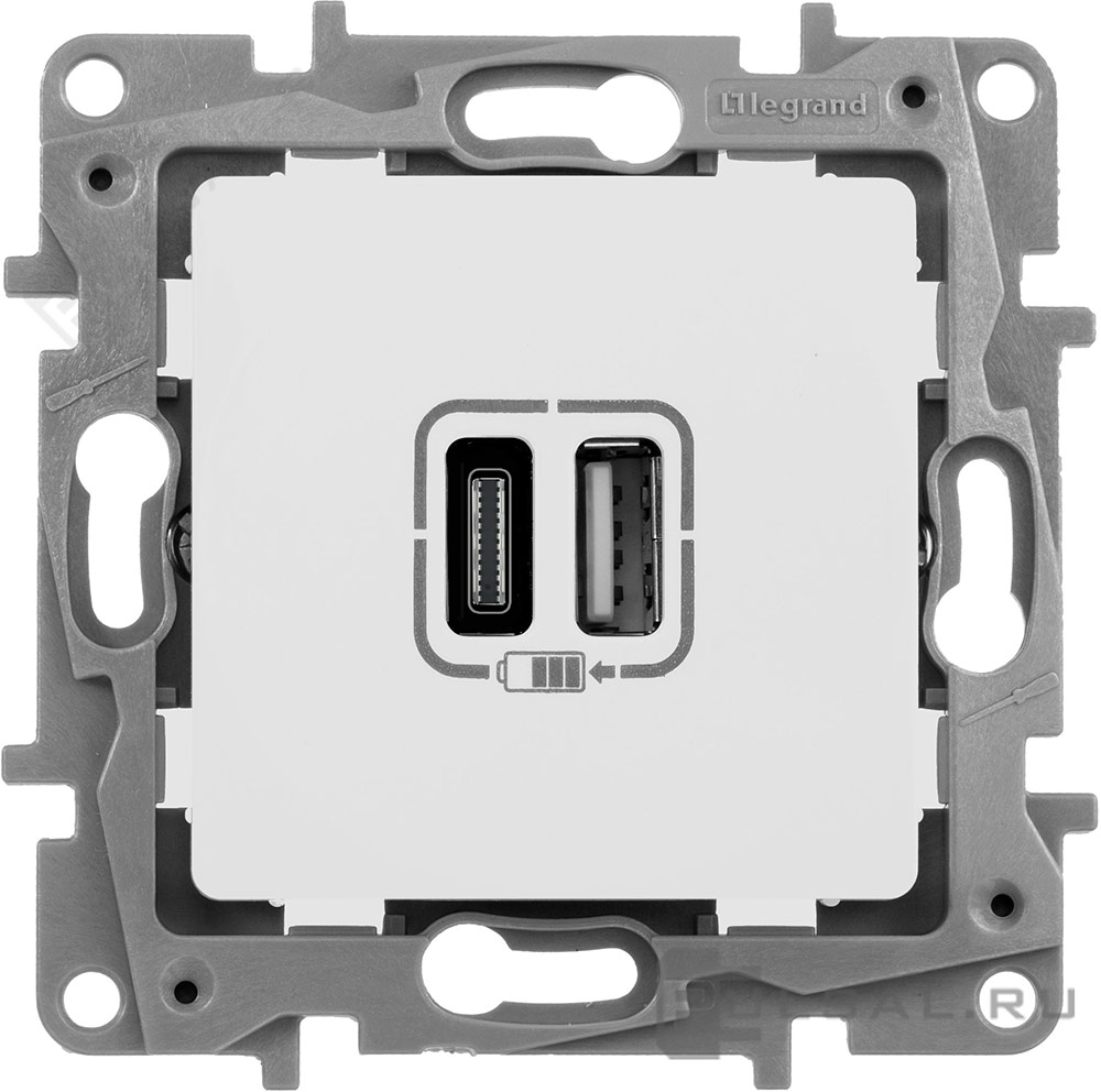 Розетка USB type-C + type-A, 3.0А Etika, USB type-C 5V, USB type-A 5V, двойная, цвет - белый