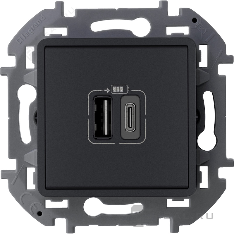 Розетка USB type-C + type-A, 3.0А Inspiria, Mosaic, DLP floor, DLP IP 44, DLP IP 40, USB type-C 5V, USB type-A 5V, двойная, цвет - антрацит