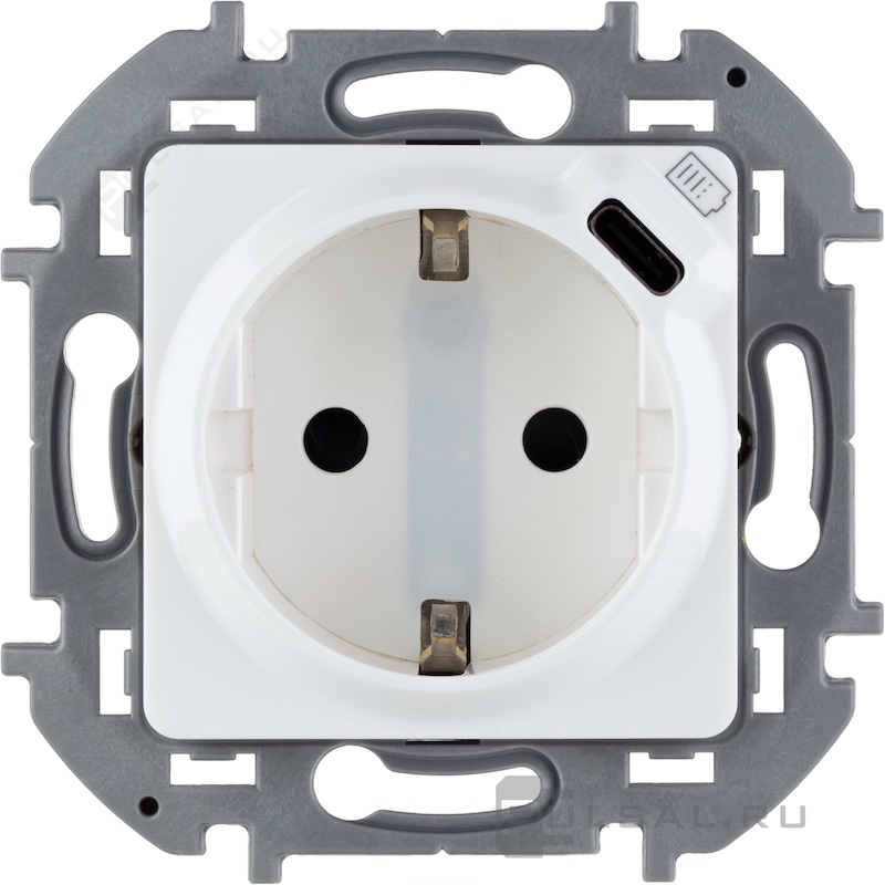 Электрическая розетка с USB type-C, 1,5A, 7,5Вт Inspiria, USB type-C 5V, Электр. с USB, одинарная, цвет - белый