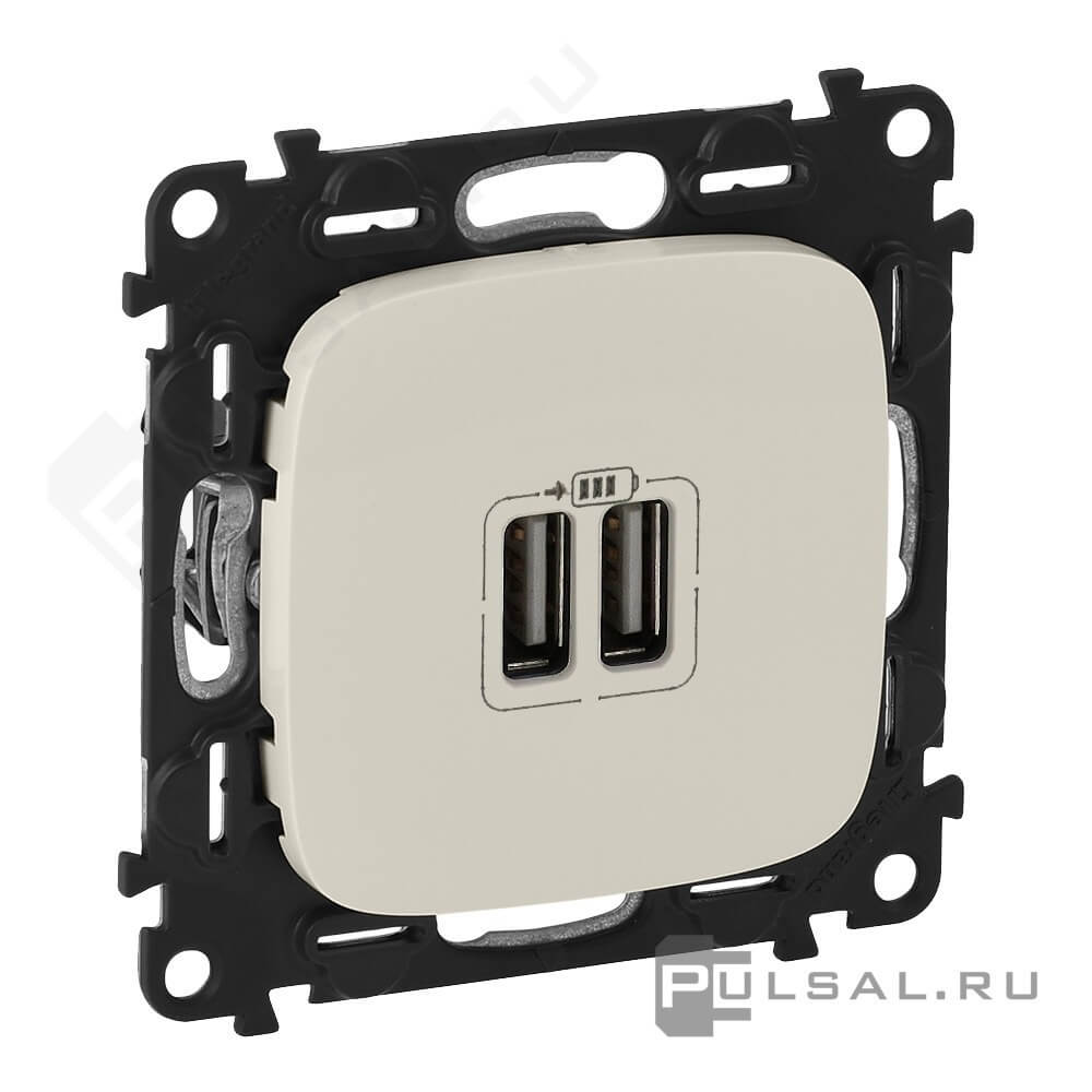 Розетка USB type-A, 1.5А Valena Allure, USB type-A 5V, двойная, цвет - слоновая кость
