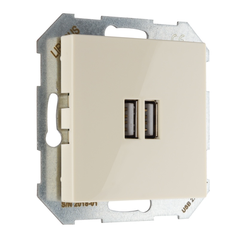 Розетка USB type-A+А, 3,4А Epsilon, Retro Liregus, USB type-A 5V, двойная, цвет - слоновая кость