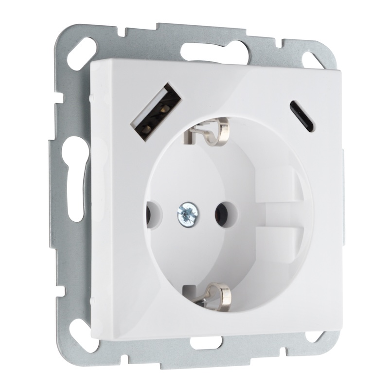 Розетка USB A+C, 3.4А с электрической розеткой Epsilon, Retro Liregus, USB type-C 5V, USB type-A 5V, двойная, цвет - белый