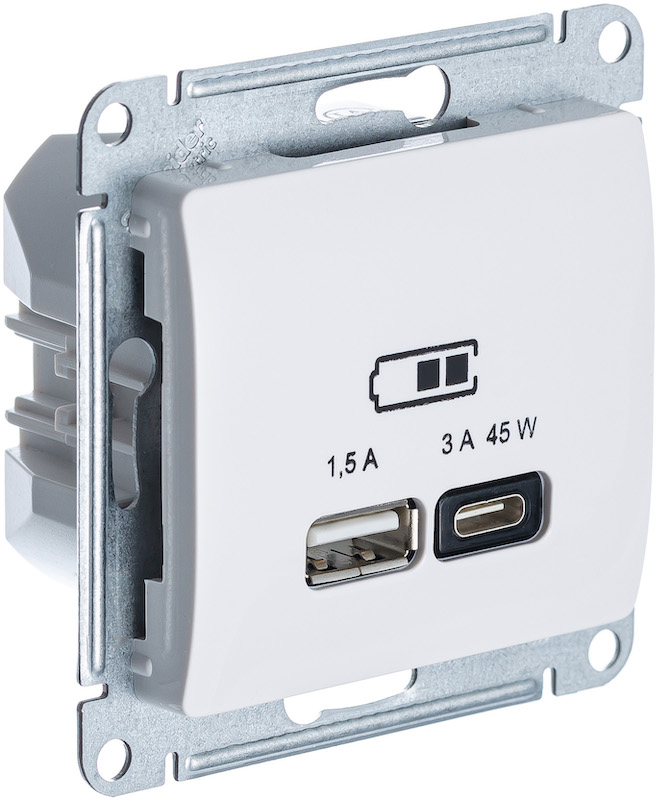 Розетка USB type-A+C 45 Вт с быстрой зарядкой Glossa, USB type-C 5V, USB type-A 5V, двойная, цвет - бежевый
