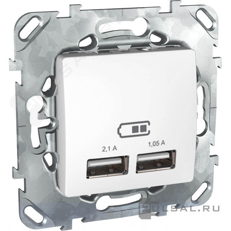 Зарядка USB 2,1А Unica Базовая, Unica Хамелеон, Unica Quadro, USB type-A 5V, двойная, цвет - белый