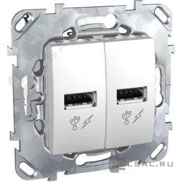 Зарядка USB, 2 модуля по 1А Unica Базовая, Unica Хамелеон, Unica Quadro, USB type-A 5V, двойная, цвет - белый