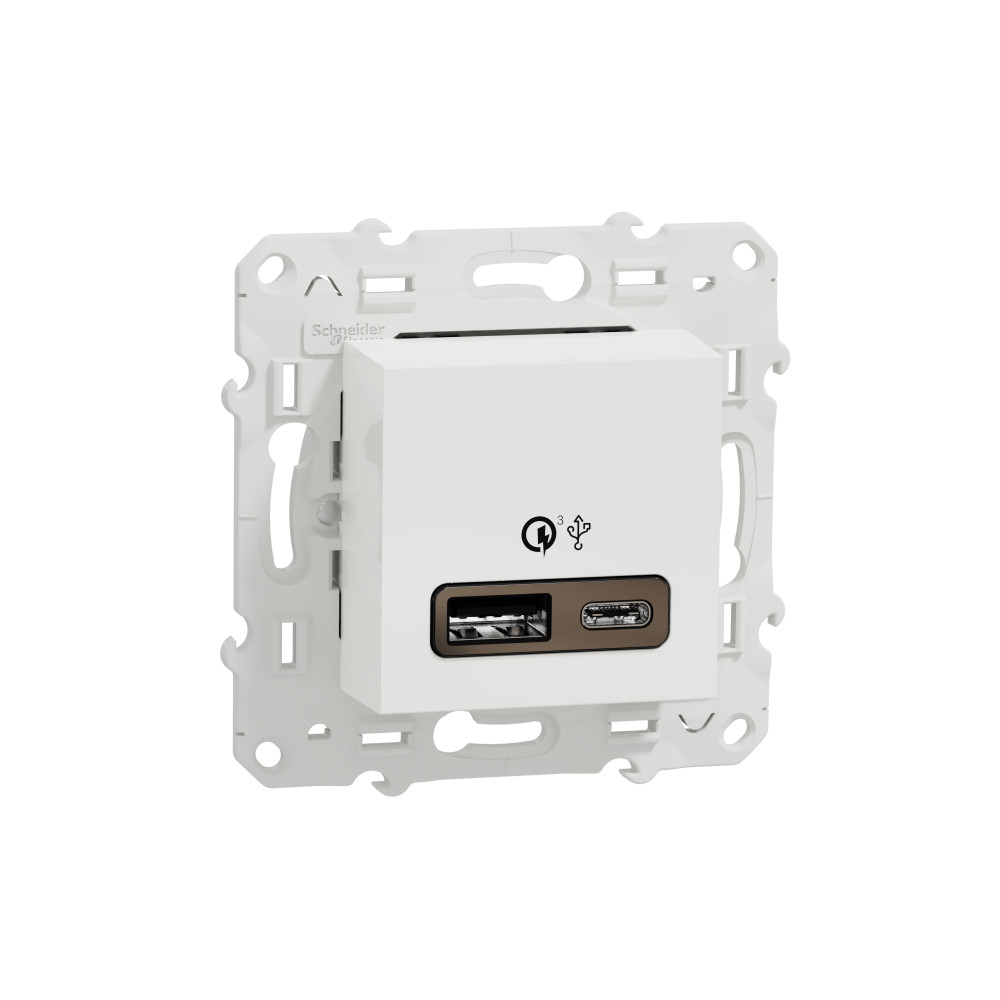 Быстрая зарядка USB type-C + type-A, 2.4А, 18Вт Unica New Pure, Unica New Studio, USB type-C 5V, USB type-A 5V, двойная, цвет - белый