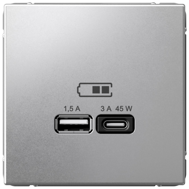 Розетка USB type-A+C 45 Вт с быстрой зарядкой ArtGallery, ArtGallery Pure, USB type-C 5V, USB type-A 5V, двойная, цвет - алюминий