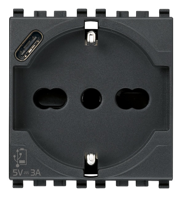 Eikon EVO, Eikon EXE, со шторками, с заземлением, одинарная, винтовые клеммы, цвет - антрацит серый