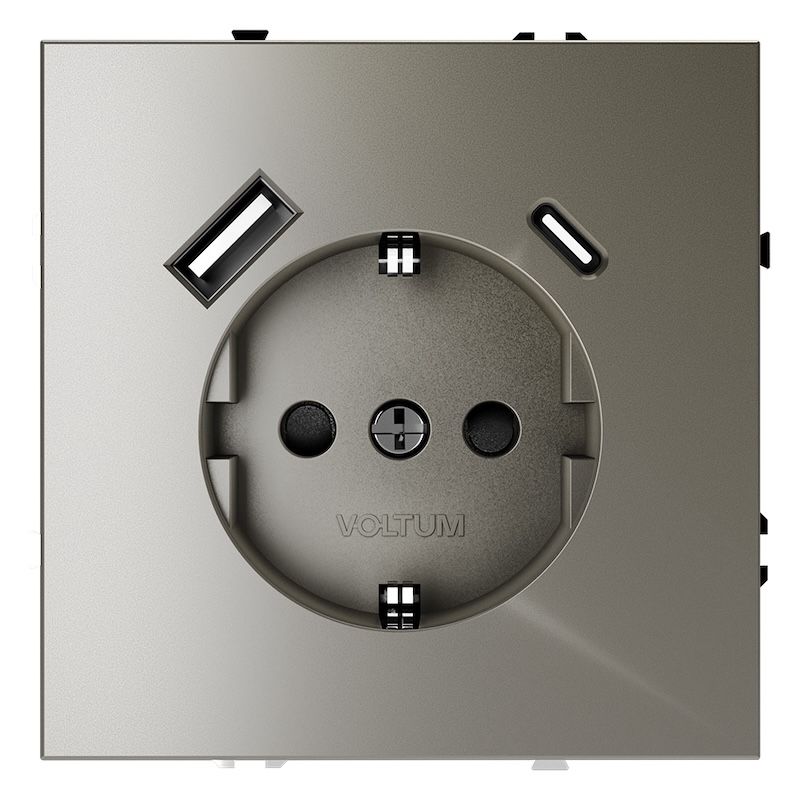 Электрическая розетка с зарядкой USB A+C, 3.2А S70, USB type-C 5V, USB type-A 5V, Электр. с USB, двойная, цвет - шелк
