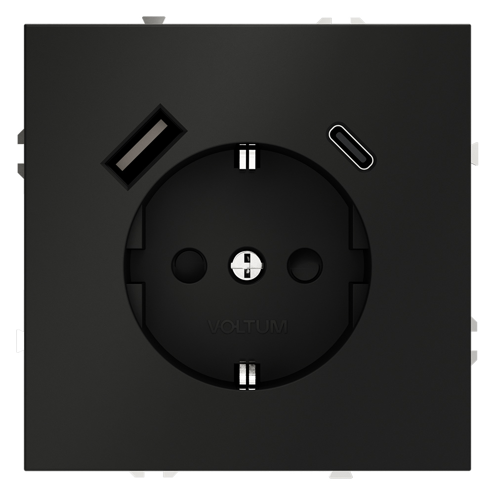 Электрическая розетка с зарядкой USB A+C, 3.2А S70, USB type-C 5V, USB type-A 5V, Электр. с USB, двойная, цвет - черный матовый