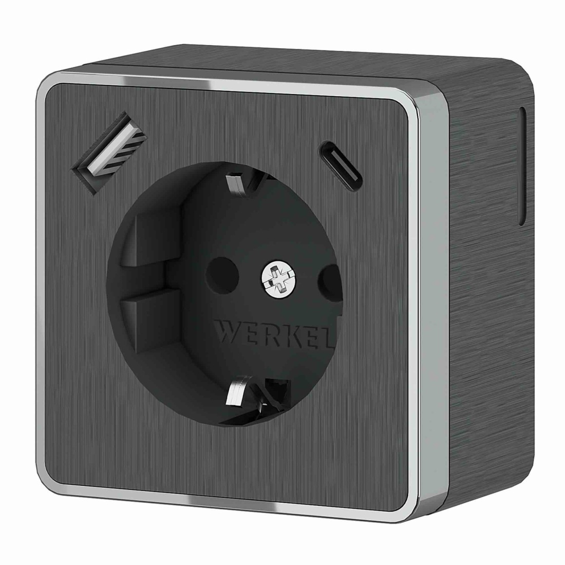 Розетка USB A+C, 3.0А с электрической розеткой Gallant, USB type-C 5V, USB type-A 5V, Электр. с USB, двойная, цвет - графит рифленый