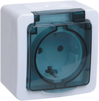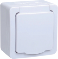 Розетка ГЕРМЕС PLUS, со шторками, с крышкой, с заземлением, одинарная, винтовые клеммы, цвет - белый, дымчатый