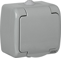 Розетка AQUATIC, с крышкой, с заземлением, одинарная, винтовые клеммы, цвет - серый